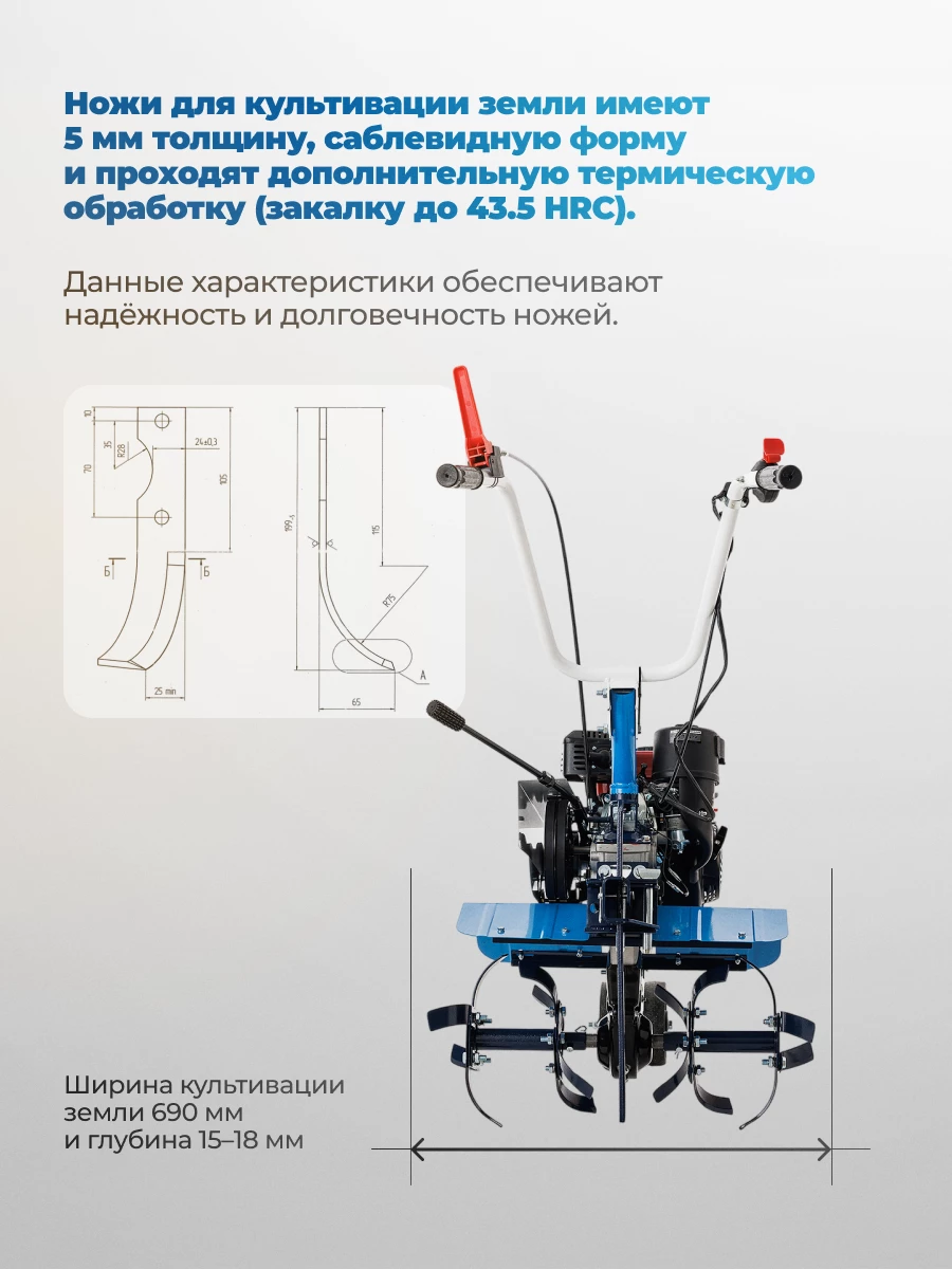 - Подходит для: обработки почвы на участках малого и среднего размера