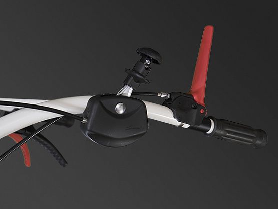 Рычаг переключения передач позволяет легко и быстро менять режим работы мотоблока. Расположен рычаг на левой рукоятке руля изделия, что удобно для пользователя. Для переключения передачи достаточно только протянуть руку и перевести рычаг в необходимое положение. Наличие двух нейтральных положений позволяет быстро выключить мотоблок в случае возникновения сложностей при работе на передаче заднего хода.