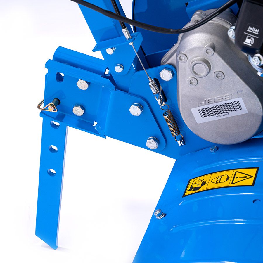 Опорное колесо упрощает перемещение мотокультиватора на фрезах по необработанному участку. Установив колесо в нижнее положение, можно с легкостью перекатить технику. При этом ножи фрез, не соприкасаясь с твердой поверхностью, сохраняют необходимую для качественной культивации остроту. Также если пользователь работает без помощников, то наличие опорного колеса значительно упрощает процедуру смены фрез на грунтозацепы. Для того, чтобы стабилизировать изделие, достаточно поставить опорное колесо и руль в нижнее положение.